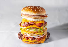 Pão, bife, queijo, bacon, alface, tomate, batata e milho