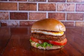 Pão, bife caseiro, ovo, bacon, alface, tomate, batata e milho