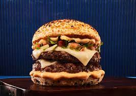 Pão, bife de picanha, queijo, bacon, alface, tomate, batata e milho