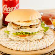 Pão, filé de frango, queijo, alface, tomate, batata e milho